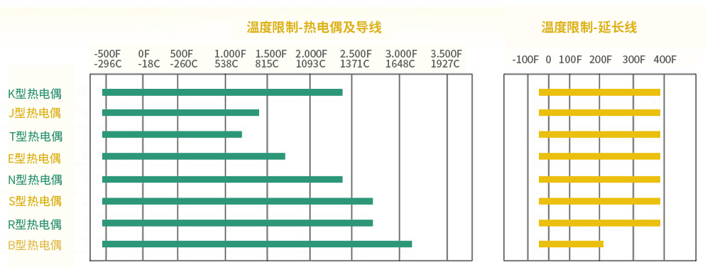 熱電偶級(jí)電線,-454 至 1600℉(-270 至 870℃)
